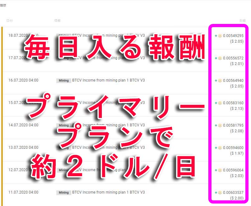 そして、このマイニング報酬は毎日報酬が入ってくるというものです。